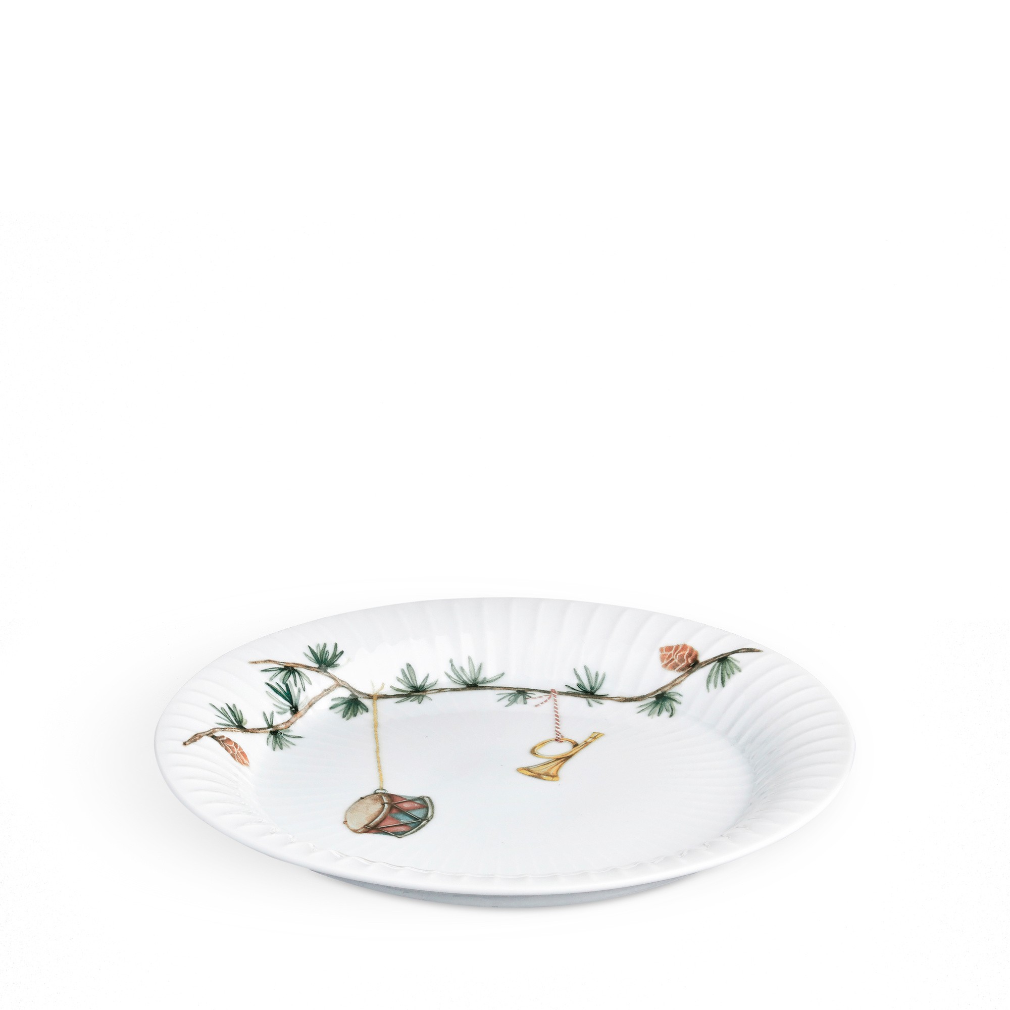 Kähler Hammershøi Christmas Tallerken Ø19 cm. Dæk det smukkeste julebord med disse skønne tallerkner fra Hammershøi Jul. Tallerknerne fuldendes af de ikoniske Hammershøi-riller og yndige juleudsmykning, som smyger sig elegant hen over den hvide tallerken. Tilsat fine juledekorationer af trompet og tromme, der hænger på en lærkegren, skabes en overraskende juletwist. Skab en skøn julemåned i selskab med dette indtagende Hammershøi julestel. Smukt design forenet med funktionel elegance.