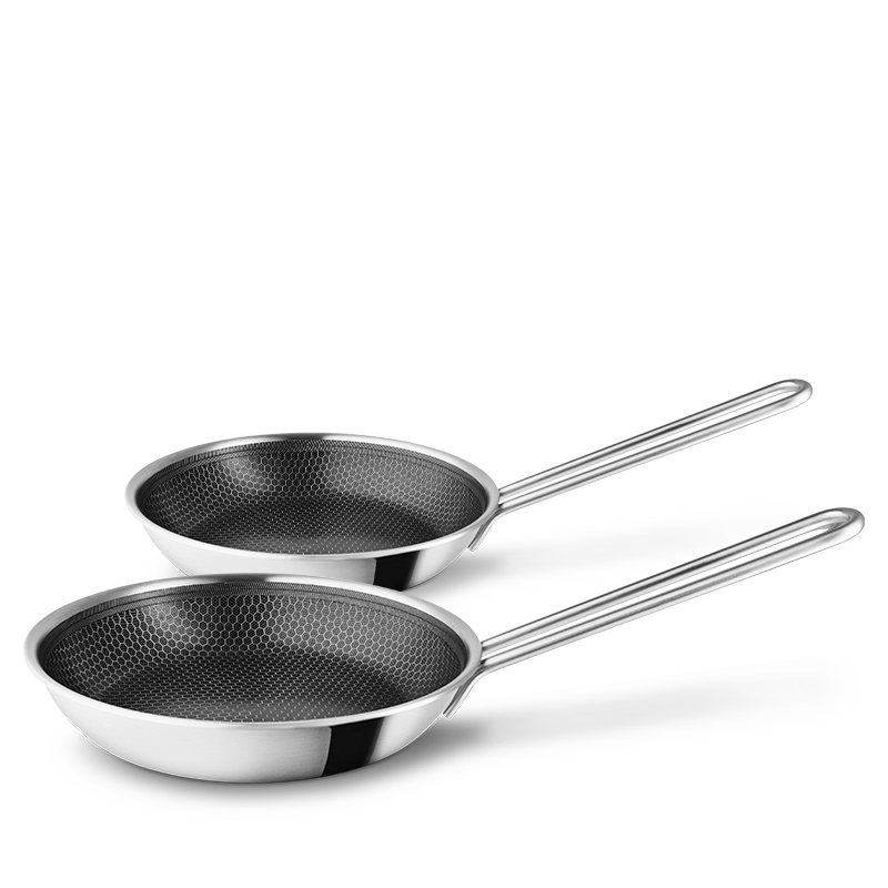 Et alsidigt stegepandesæt, der kombinerer funktionalitet, robusthed og moderne design til køkkenet.