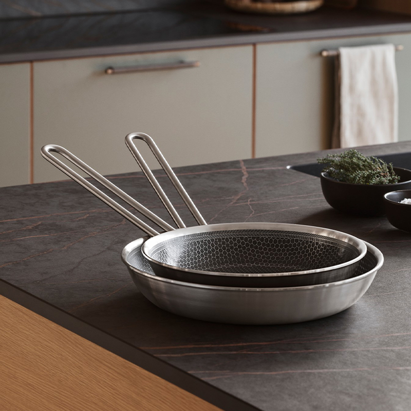 Panderne er slidstærke og fremstillet i rustfrit stål og genanvendte materialer, hvilket giver lang holdbarhed. De tåler alle varmekilder inkl. induktion og kan bruges i ovn op til 400°C.