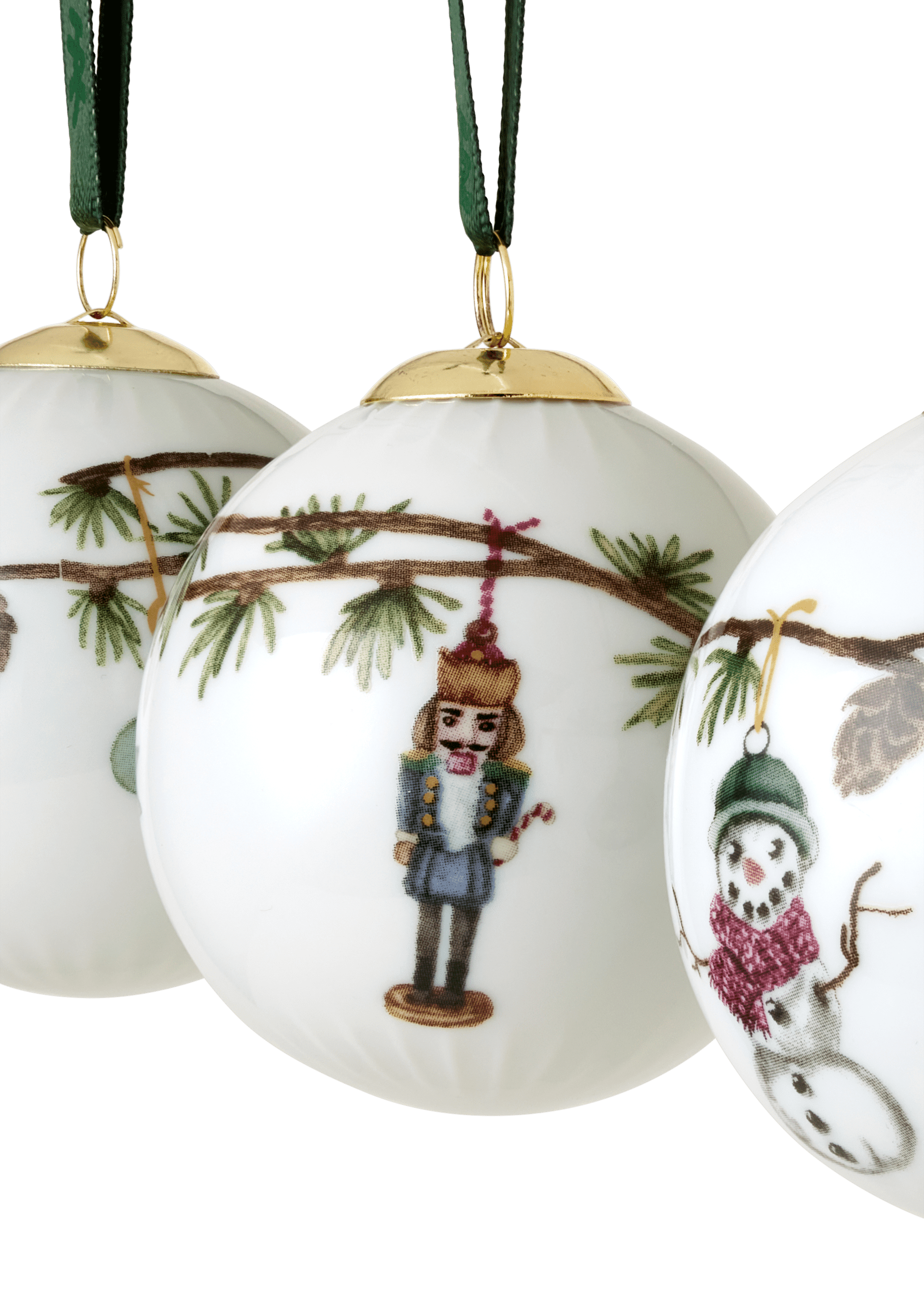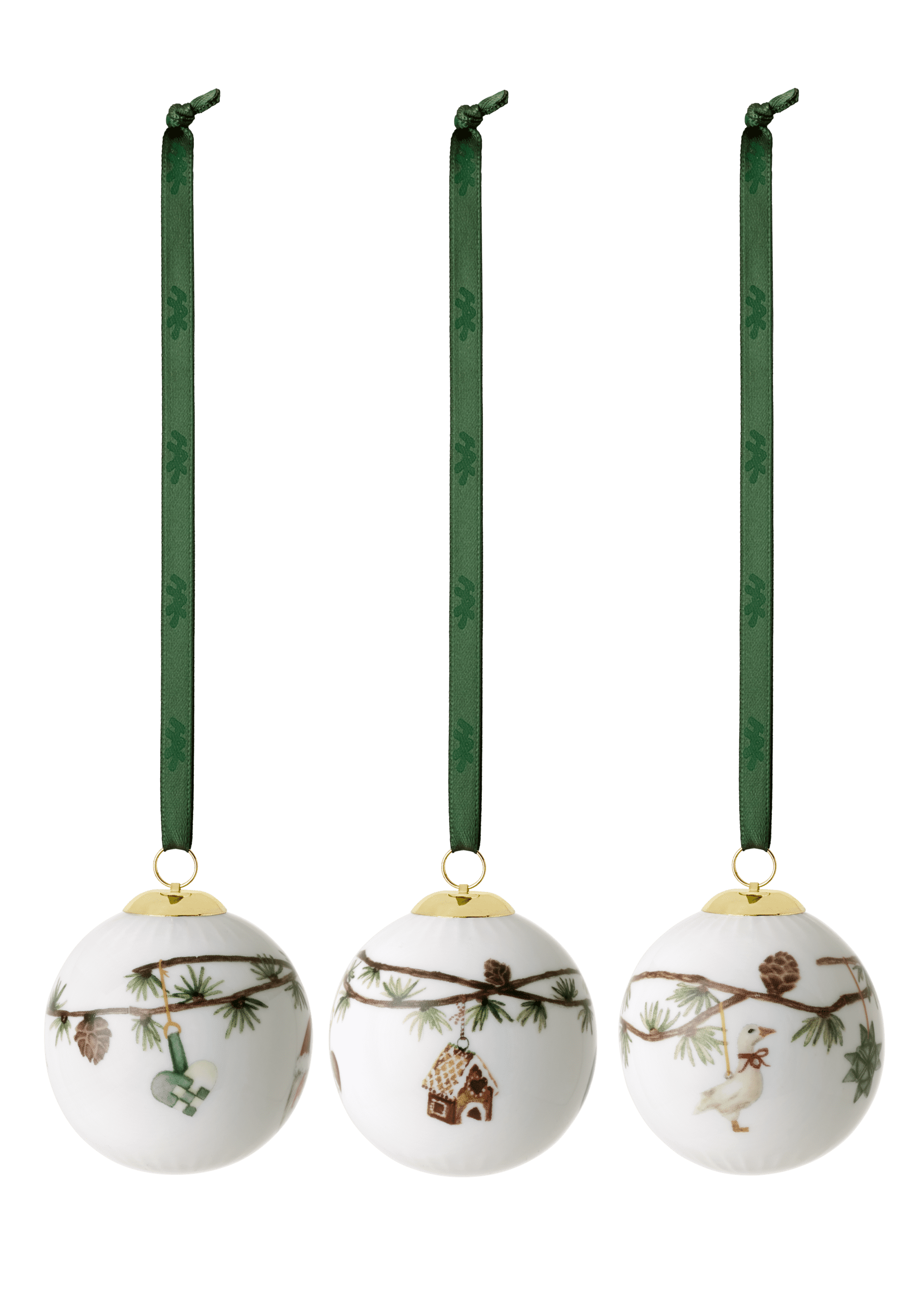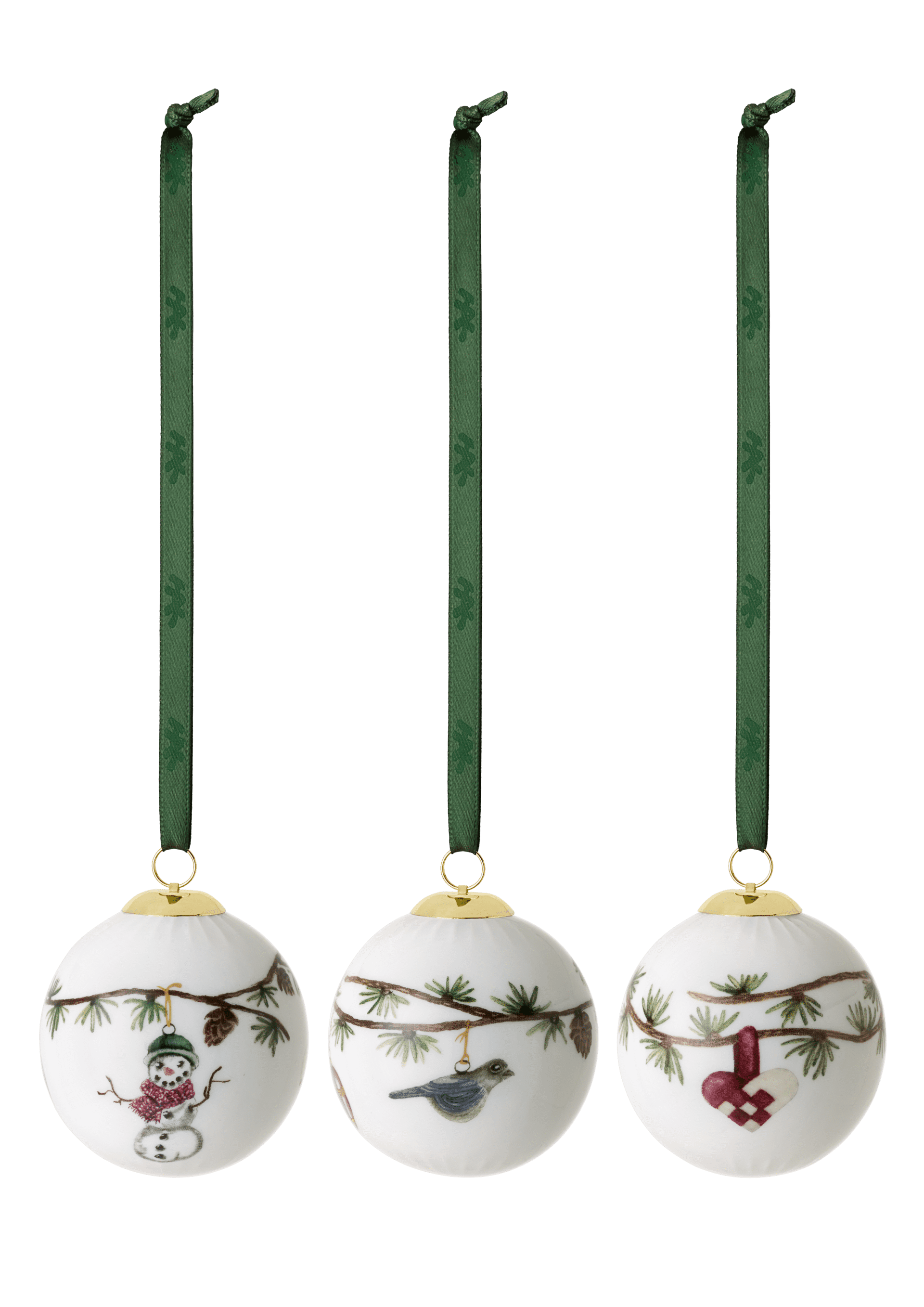 Skab ægte julestemning med denne sampak med tre yndige julekugler fra Kählers juleserie Hammershøi Christmas. De fine, detaljerede julemotiver er skabt af kunstneren Rikke Jacobsen, der med sin karakteristiske streg fortæller små historier med blandt andet kræmmerhuse, engle, valnødder, fugle, kogler og stjerner – eller smukt dekoreret med julemotiver som julehjerte, grankogle og julegås. Alle motiver der bringer minder om den traditionelle jul, samtidig med at de ikoniske Hammershøi-riller skaber et moderne og nutidigt touch. Brug de stemningsfulde Hammershøi Christmas-julekugler fra Kähler i vinduet, på juletræet eller som pynt på julebordet. Du kan med fordel kombinere julekuglerne med andre dele fra juleserien og på den måde lade julestemningen sprede sig ud i din bolig.