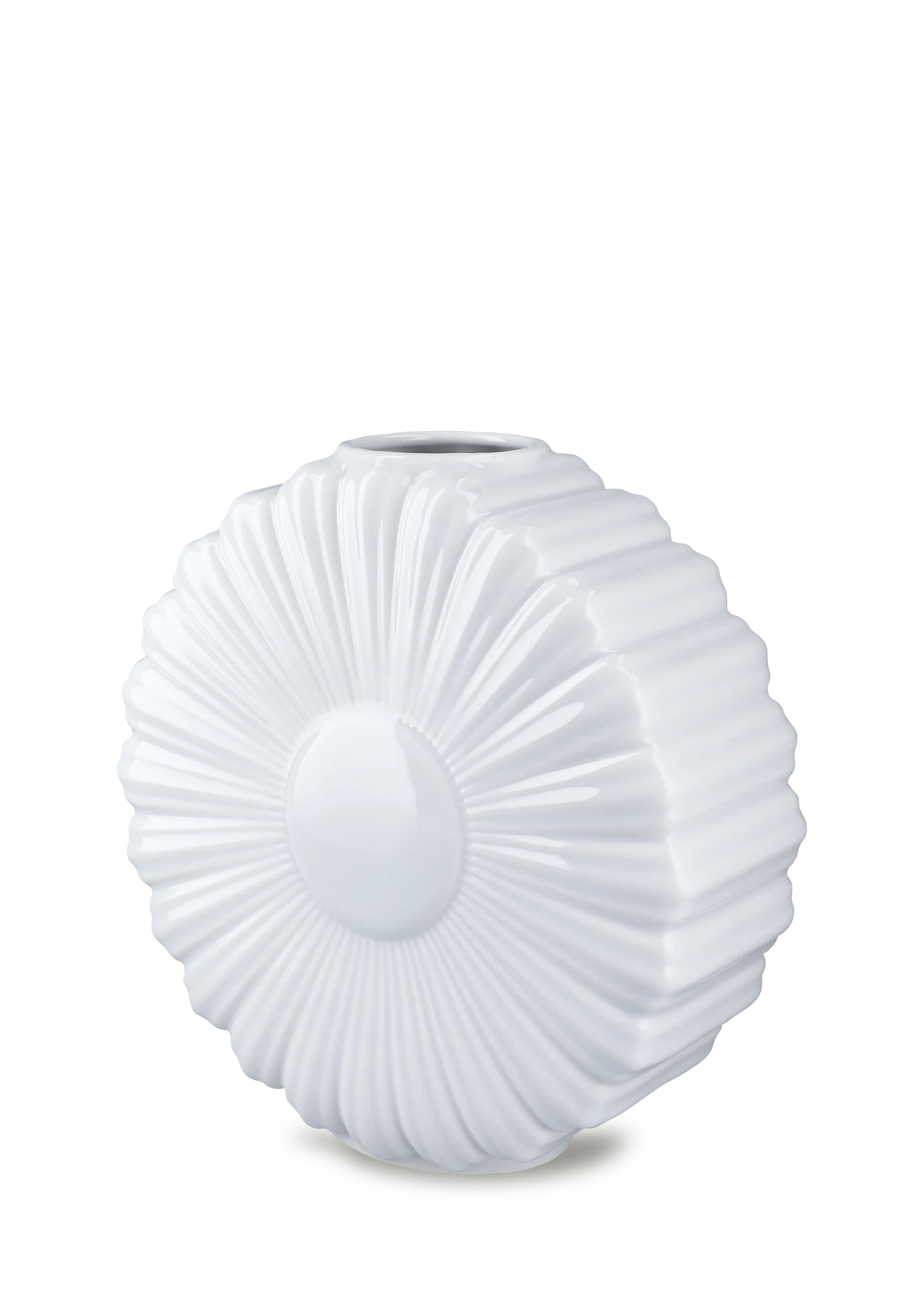 Marguerit-vase fra Lyngby Flower-serien i kridhvidt porcelæn, designet af Marianne Nielsen.