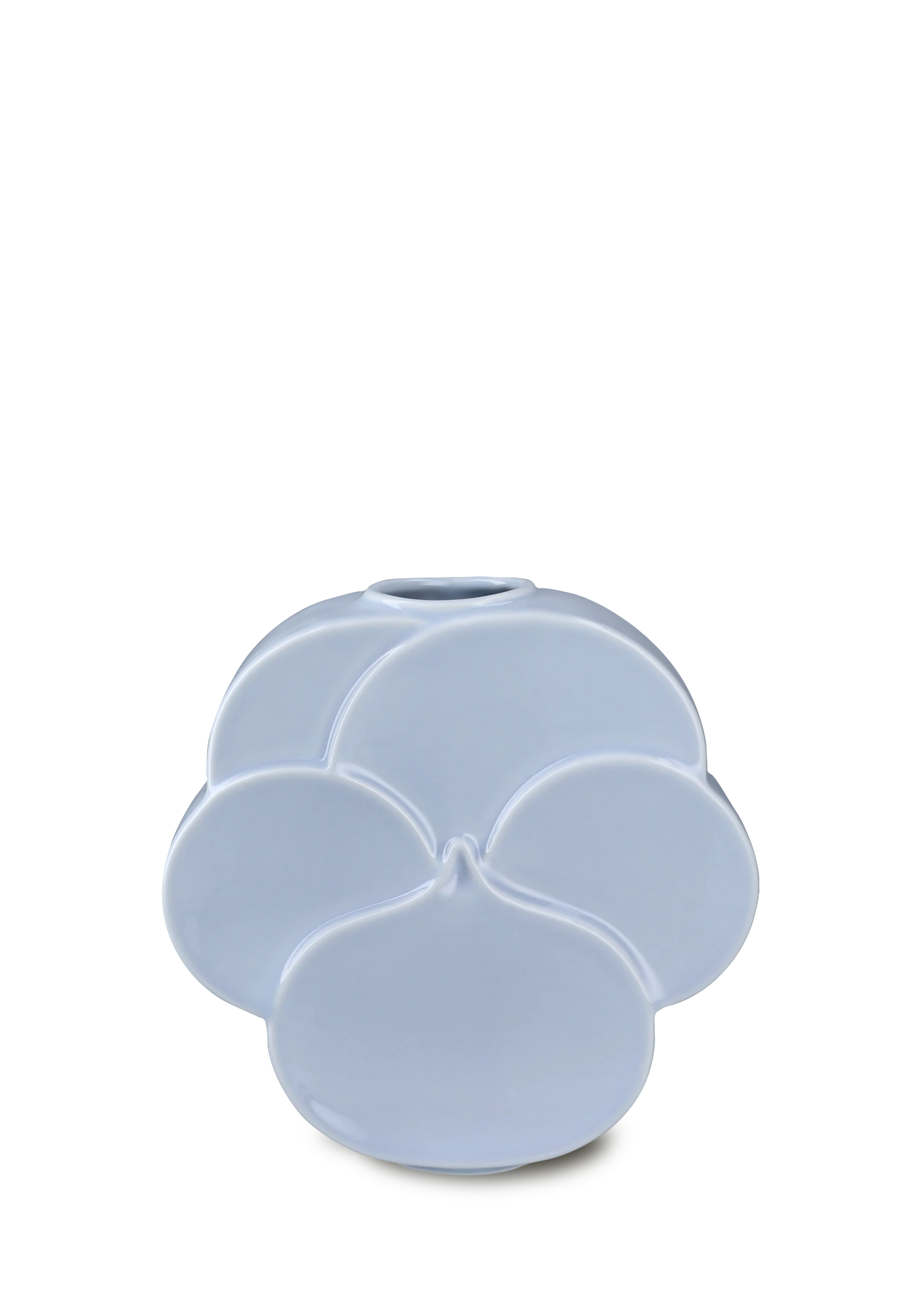 Stedmoderblomst-vase fra Lyngby Flower-serien i lys, klar blå porcelæn, designet af Marianne Nielsen.