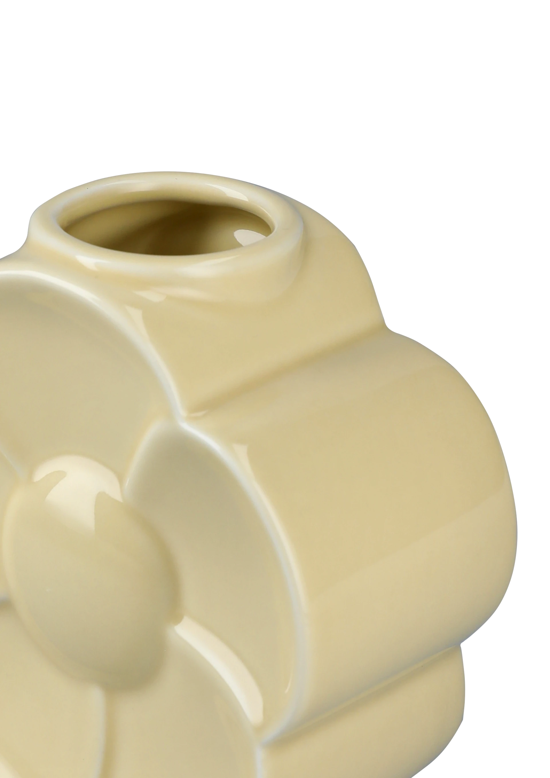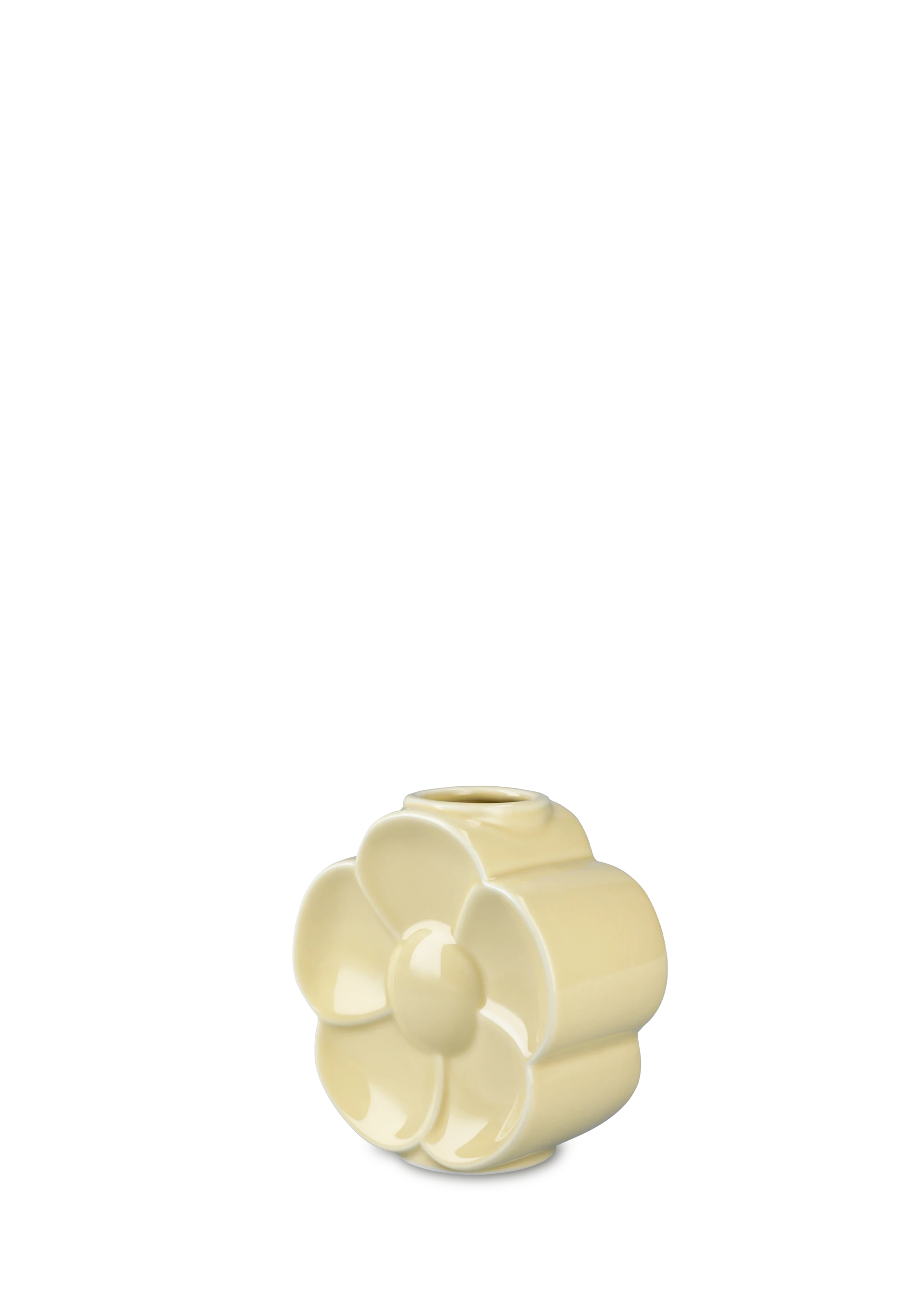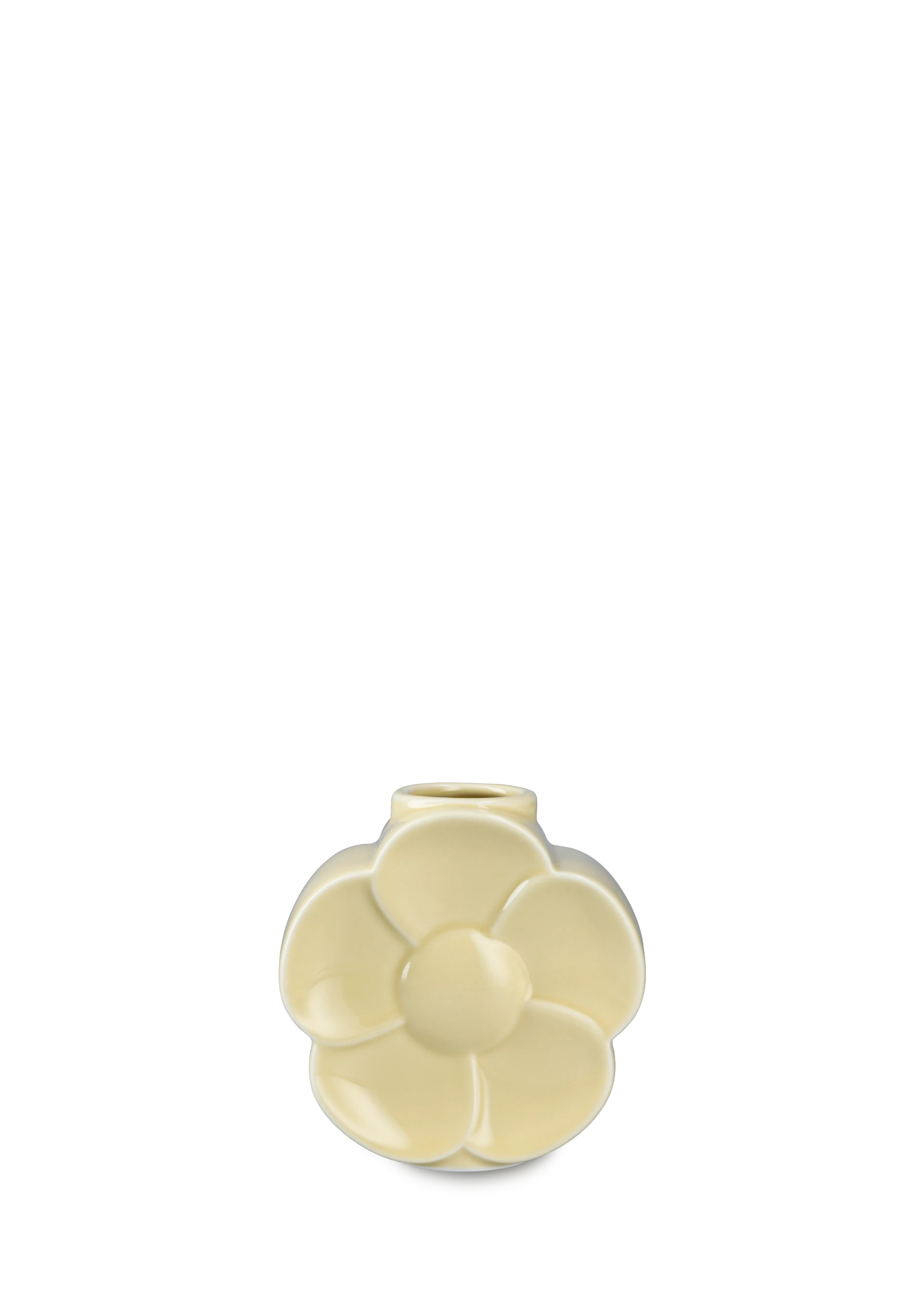 Smørblomst-vase fra Lyngby Flower-serien i sart gul porcelæn, designet af Marianne Nielsen.