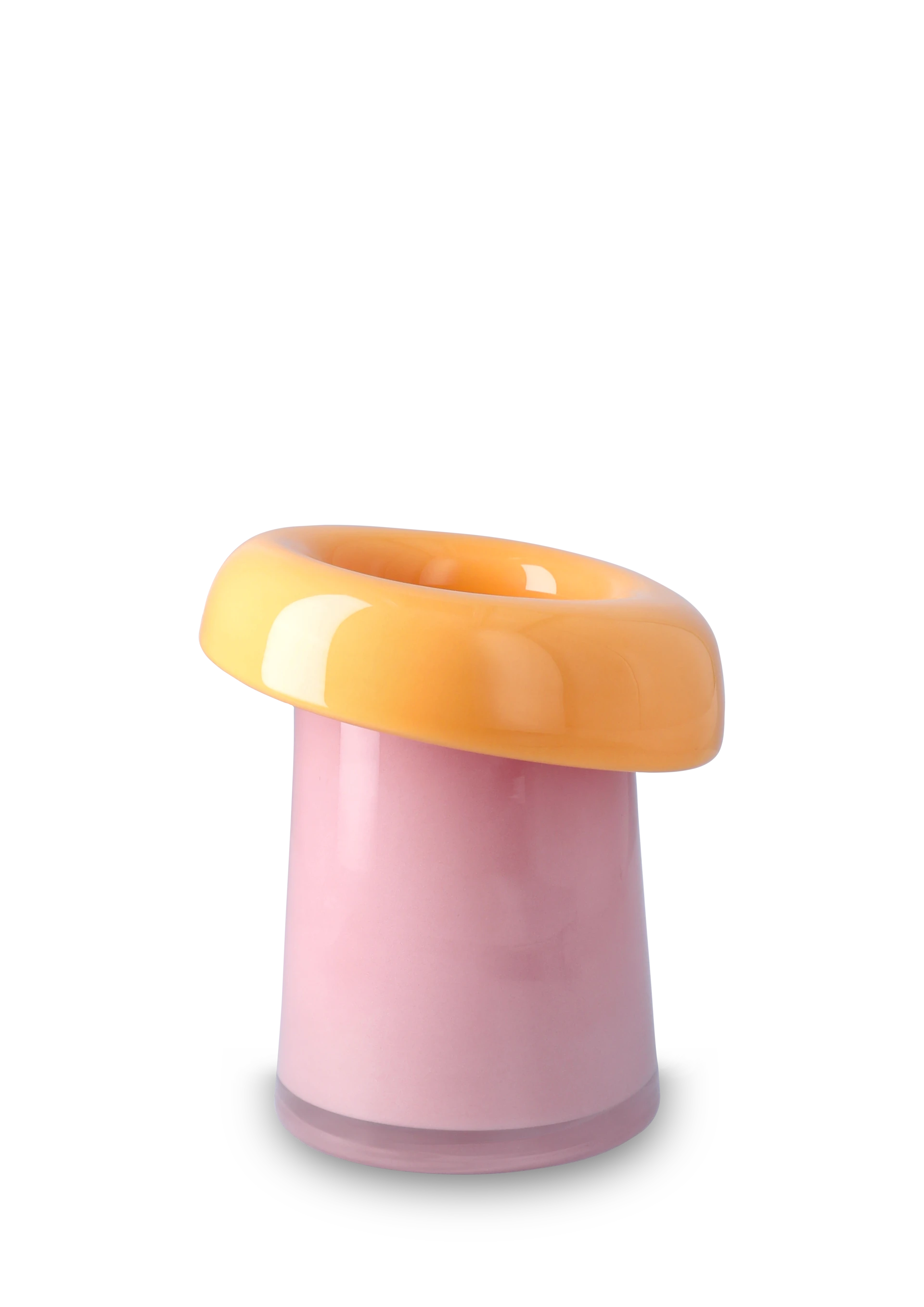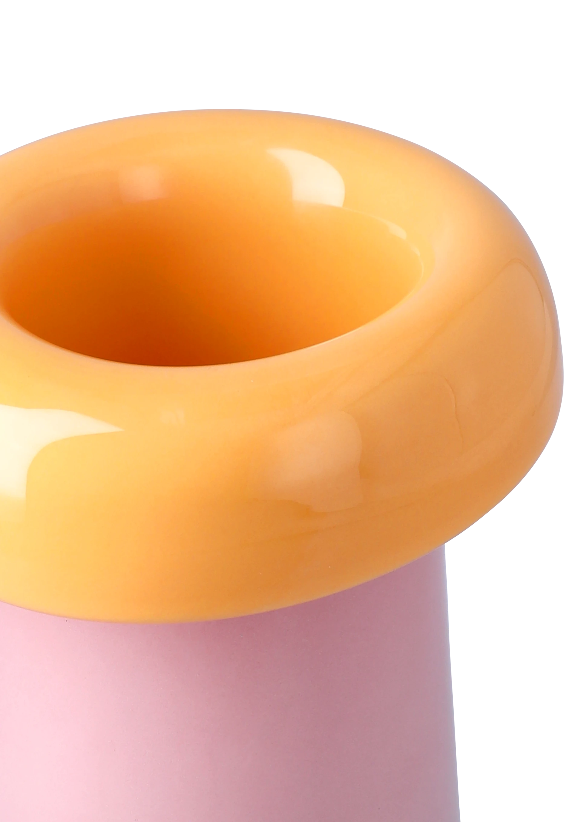 Med sine 16,5 cm og farvekombinationen pink/orange fremstår vasen som et levende, flydende designobjekt, hvor inderside og yderside mødes i harmoniske blanke flader.