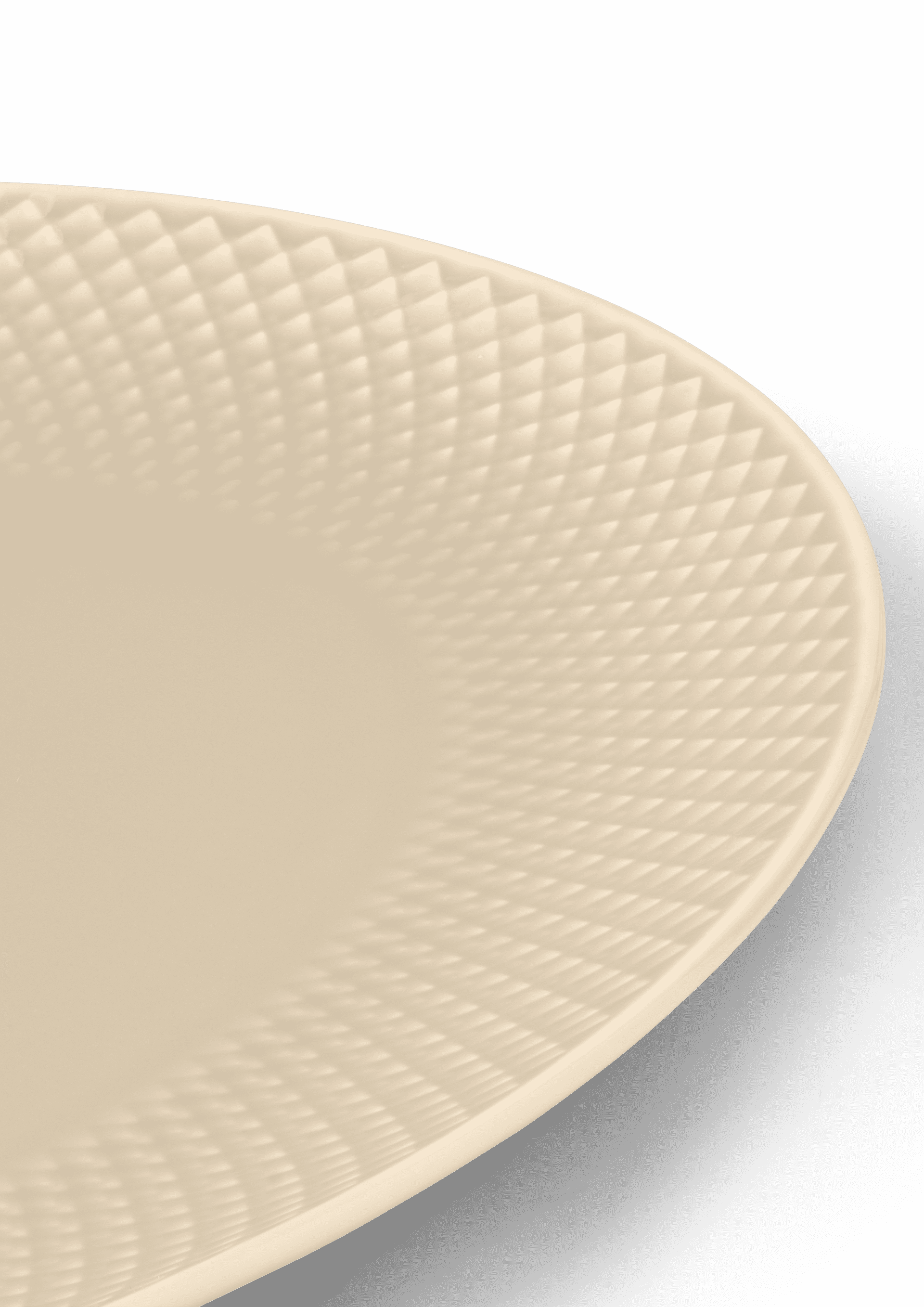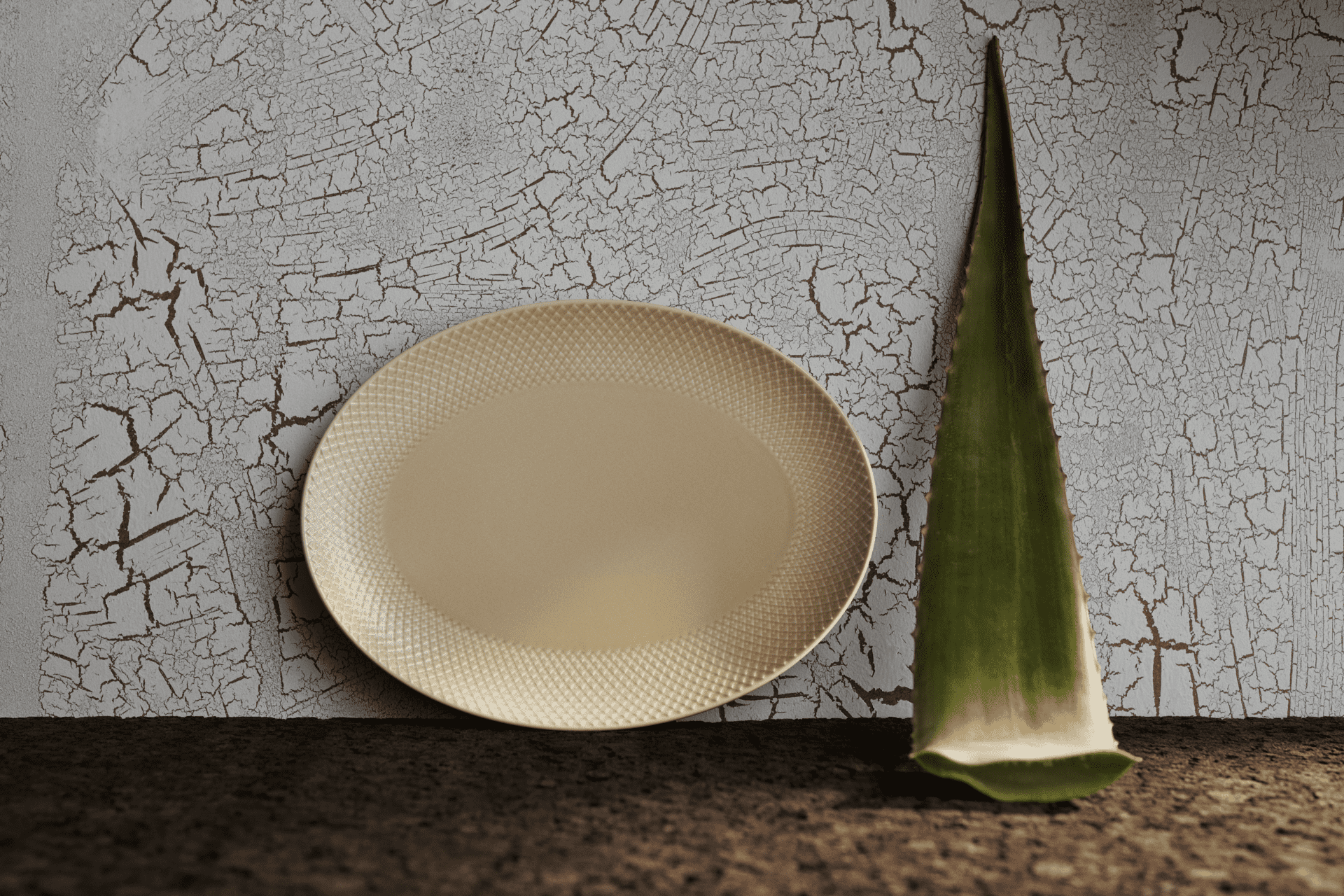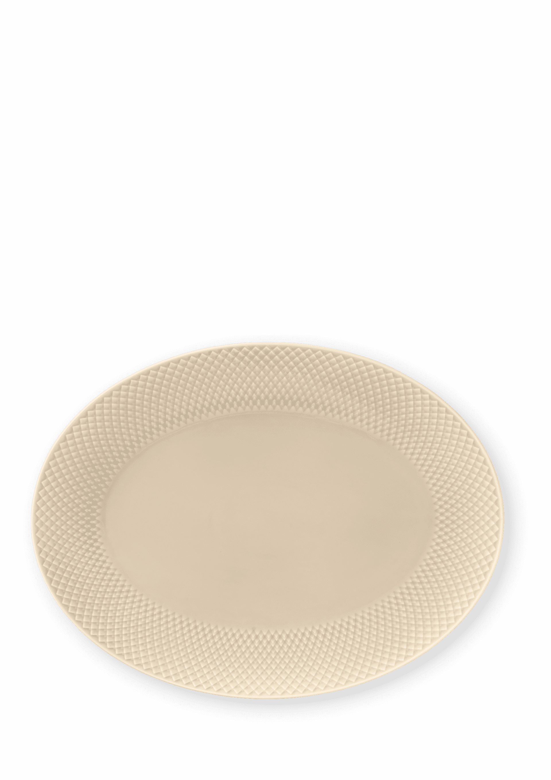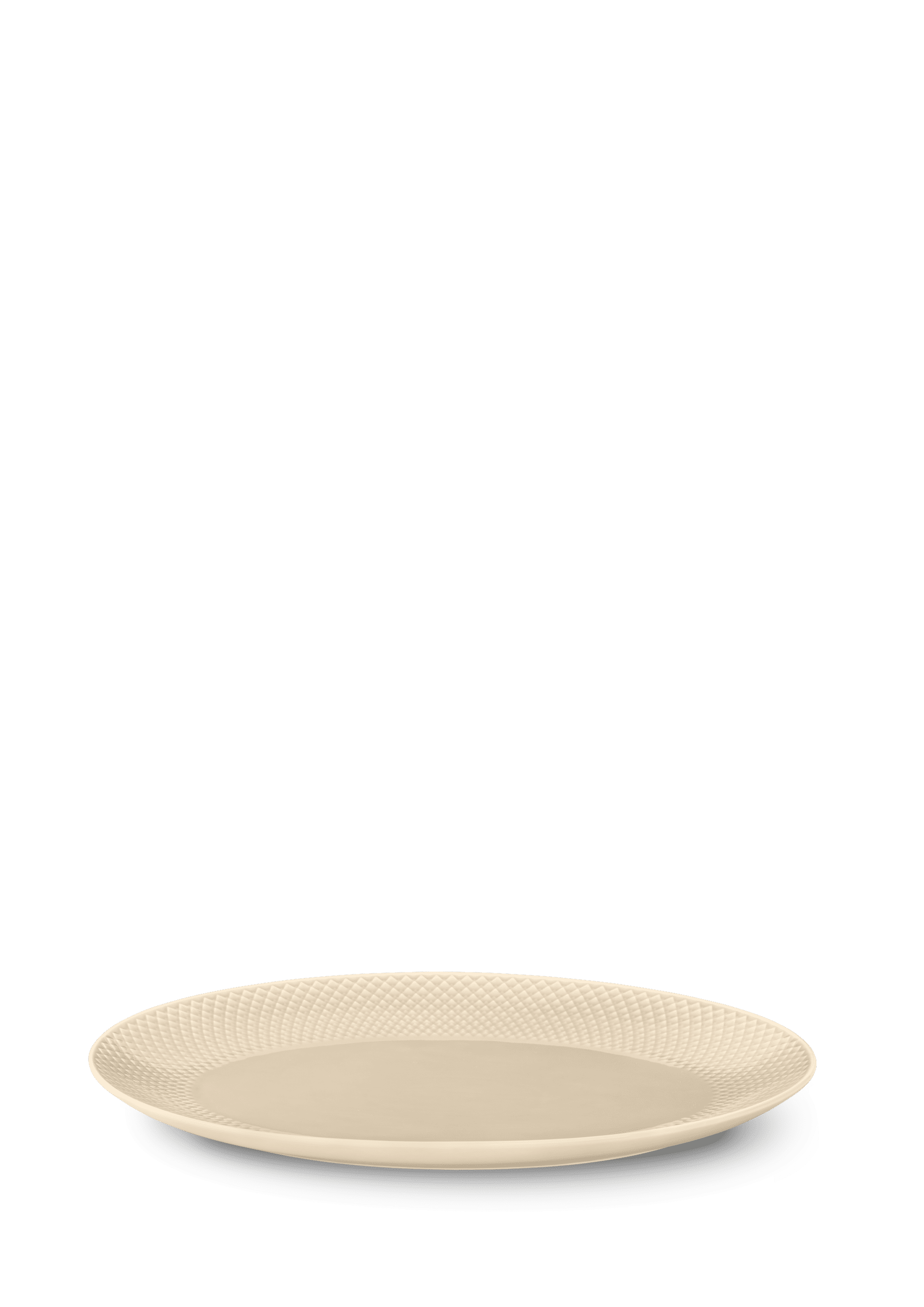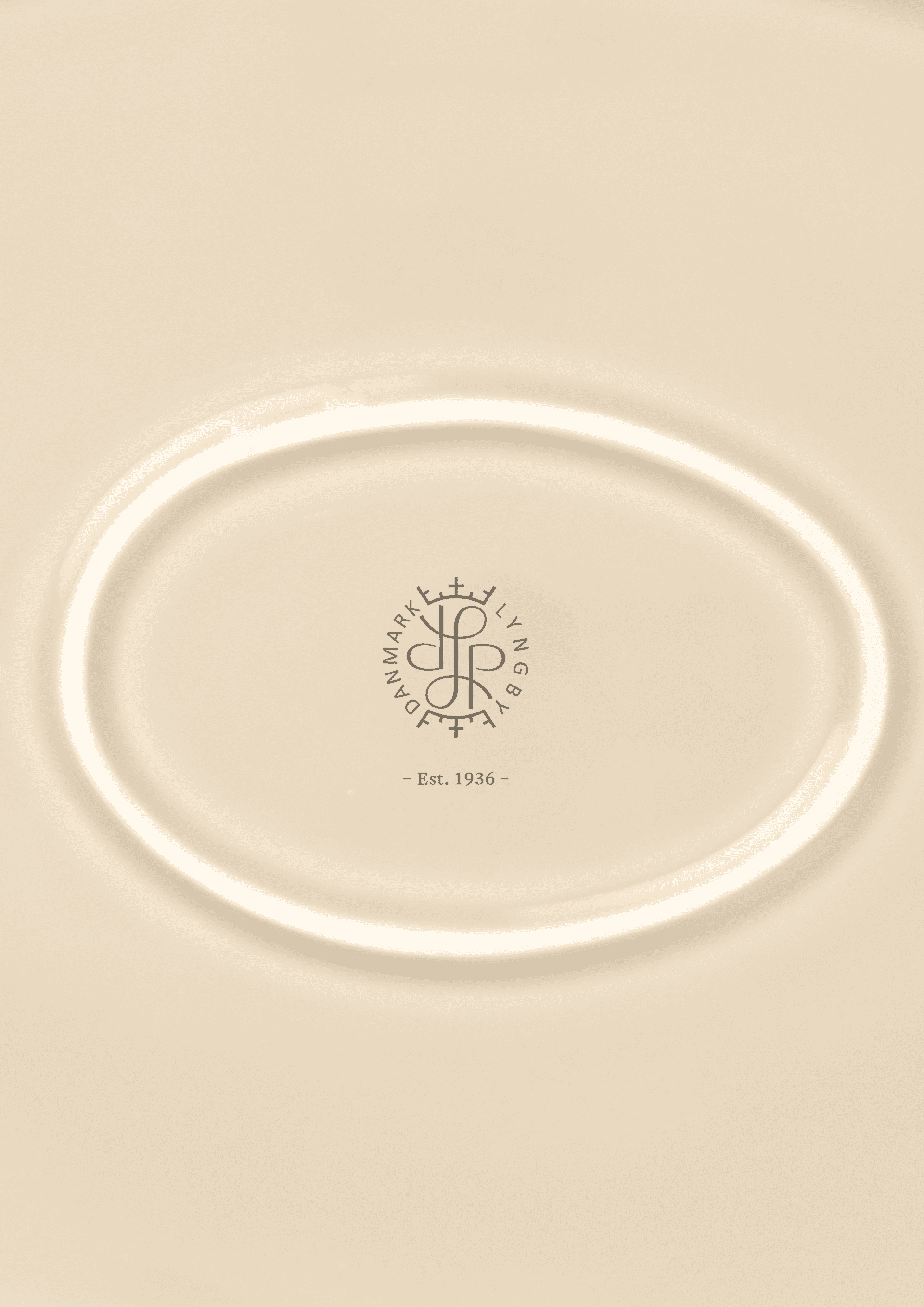 Et jordnært og nærværende udtryk på bordet. Med en farvepalet i fire elegante jordfarver inviterer Rhombe Earth os til at sætte farten ned, være nærværende omkring det vi spiser, dem vi spiser med og at lægge mærke til skønheden i det stel, vi spiser af. Seriens store ovale serveringsfad på 26,5x35 cm kommer i den beigefarvede marble, der ligesom de andre afdæmpede jordfarver i Rhombe Earth bringer Rhombe-stellets ikoniske reliefmønster frem på en ny og anderledes måde og indbyder til, at vi går et lag dybere og giver opmærksomhed til maden i skålen, til sanserne og til samtalen med de andre omkring bordet. Alle Rhombe Earth-seriens fire smukke farver – clay, marble, moss og slate – er ligesom i Lyngby Porcelæns populære Rhombe Color-serie nøje udvalgt af designduoen Stilleben, der består af Ditte Reckweg og Jelena Schou Nordentoft. Brug alle de forskellige Rhombe Earth-dele sammen i din borddækning og lad de forskellige størrelser tallerkener titte frem under hinanden, så de lune farver får lov at tale sammen. Tallerkenerne, krusene, skålene og serveringsfadene i Rhombe Earth er selvfølgelig også både sammen og hver for sig oplagte som supplement til din Rhombe Color-samling eller i kombination med det klassiske hvide Rhombe-stel, hvor de grå og brune nuancer på de enkelte Rhombe Earth-dele sammen med Lyngby Porcelæns inspirerende linjer vil skabe et både moderne og afslappet udtryk og stå smukt op imod det hvide porcelæn.