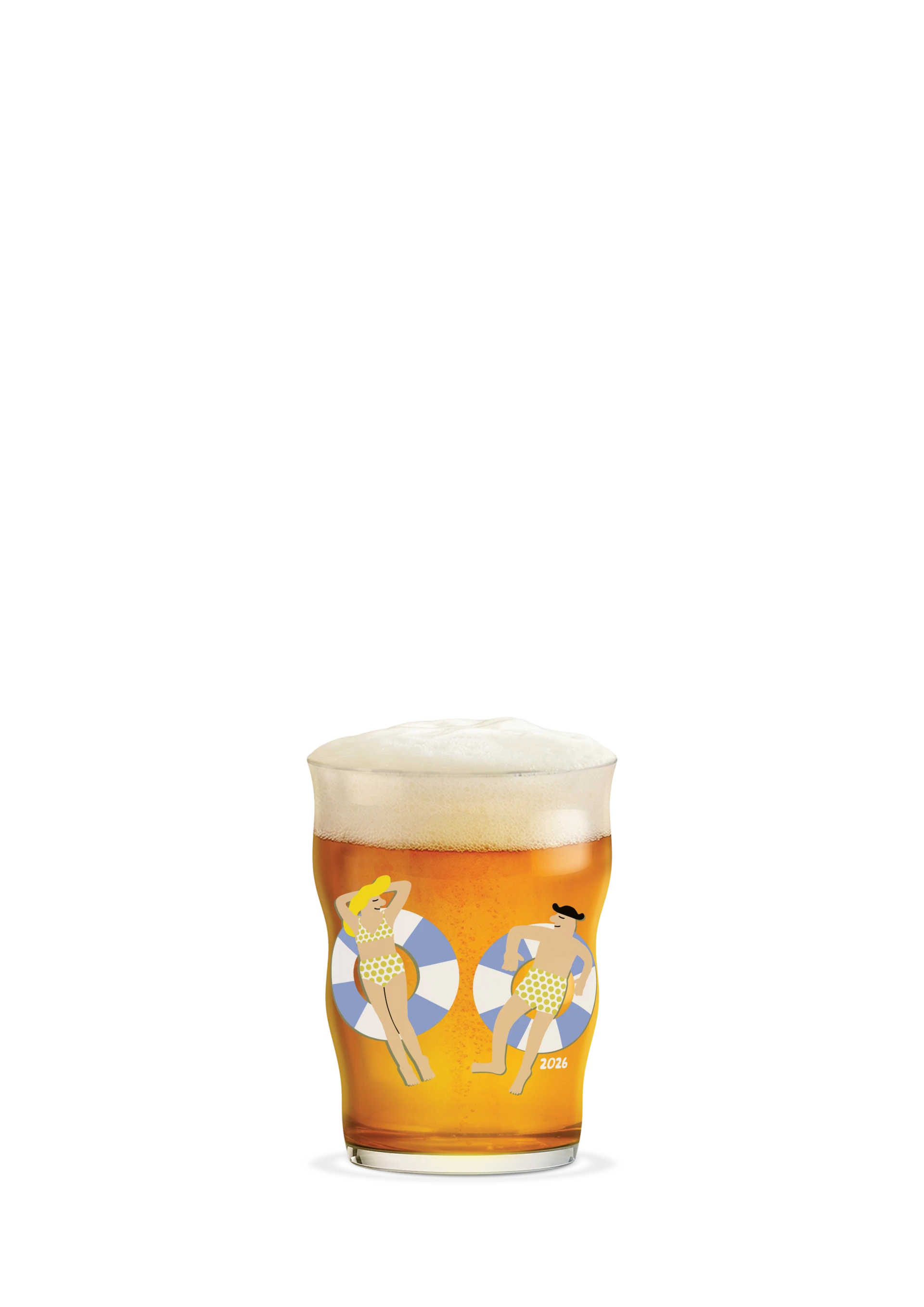 Holmegaard x Mikkeller kombinerer håndværk og ølnydelse i et 40 cl pintglas med fuldfarvet motiv af Mikkellers maskotter, Henry og Sally, der slapper af i badering. Det dekorative 2026-årsglas er både en festlig samtalestarter og et kvalitetsglas, der hylder Holmegaards over 200-årige glasarv.