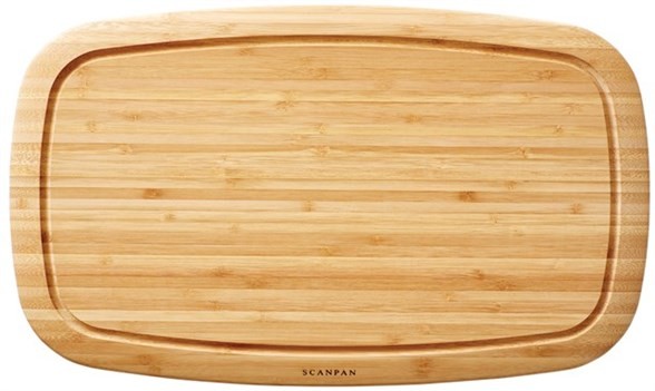 Scanpan Classic Skærebræt - 18/40 mm tykt, oliebehandlet skærebræt med en dyb rille til opsamling af saft. Kan anvendes på begge sider. Bambus er et bæredygtigt og miljøvenligt materiale. Det er samtidigt hårdt, hvilket gør det velegnet til skærebrætter.