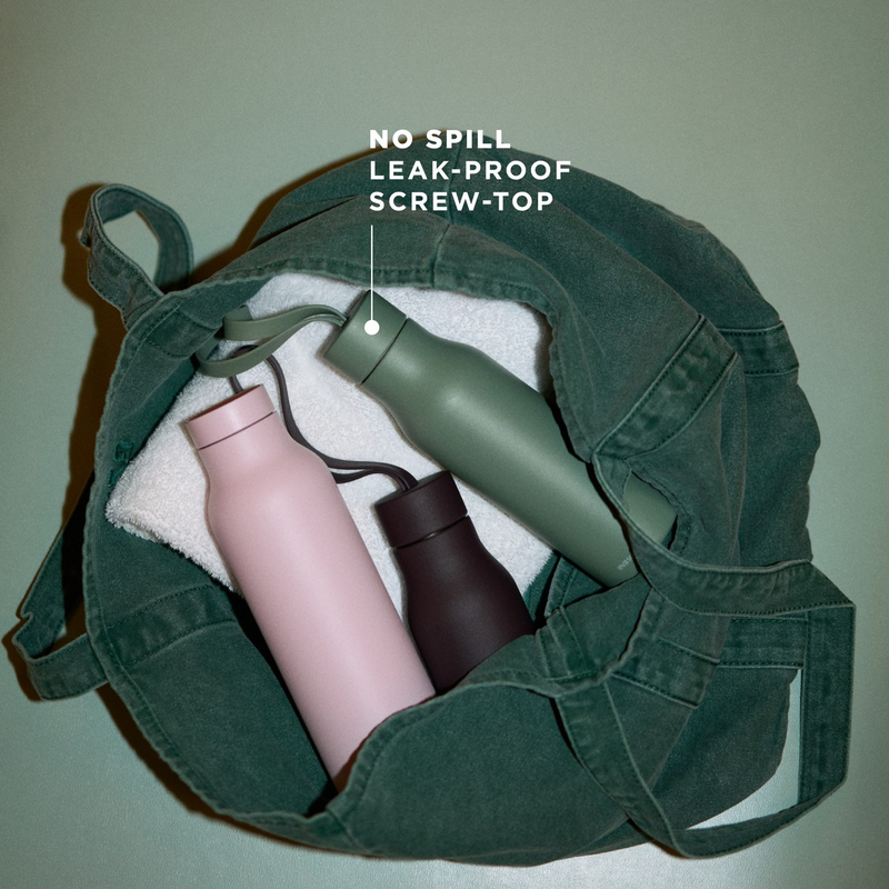 Den dobbeltvæggede vakuumisolering holder dine drikke kolde i op til 12 timer og varme i op til 6 timer. Det 100% tætsluttende skruelåg sikrer, at flasken er helt lækagesikker i tasken.