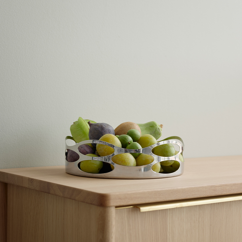 Embrace brødkurven fra Stelton er en alsidig en af slagsen. Selve rammen/bakken er lavet i rustfrit stål, og indeni er finder du en udtagelig brødpose i bomuld, som sikrer, at der ikke kommer krummer på bordet. Du kan også vælge at tage brødposen ud, og bruge bakken alene som frugt- eller grøntsagsskål. Designet er ikke til at tage fejl af- og med sit tidløse design og organiske former er Embrace brødkurven en flot tilføjelse til ethvert spisebord.