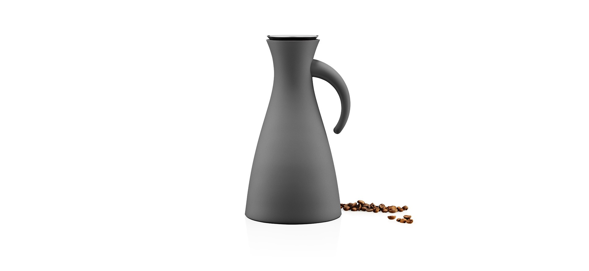 Det skulpturelle design bygger på det prisvindende koncept, der ved hjælp af en hældekrave i rustfrit stål gør termokanden 100% drypfri. Termokanden er med sin brede åbning i toppen nem at fylde. Den er kunststof udvendigt og har en glaskolbe indvendigt.
