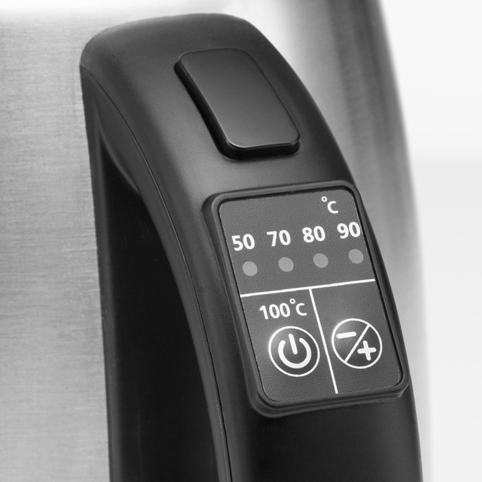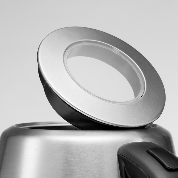 Ledningsfri kedel i rustfrit stål. Kapacitet 1,2 L, 2200 W.